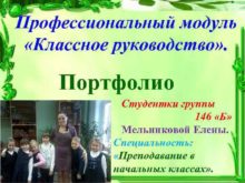 Профессиональный модуль Классное руководство Портфолио Студентки группы