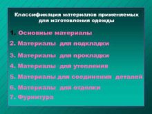 Классификация материалов применяемых для изготовления одежды 1 Основные