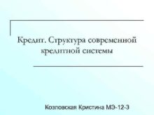 Кредит Структура современной кредитной системы Козловская Кристина МЭ-12