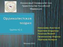Финансовый Университет при Правительстве Российской Федерации Ординалистская теория