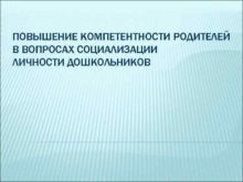 ПОВЫШЕНИЕ КОМПЕТЕНТНОСТИ РОДИТЕЛЕЙ В ВОПРОСАХ СОЦИАЛИЗАЦИИ ЛИЧНОСТИ ДОШКОЛЬНИКОВ