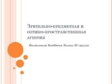 ЗРИТЕЛЬНО-ПРЕДМЕТНАЯ И ОПТИКО-ПРОСТРАНСТВЕННАЯ АГНОЗИЯ Выполнила Бикбаева Лилия 33