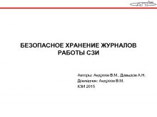 БЕЗОПАСНОЕ ХРАНЕНИЕ ЖУРНАЛОВ РАБОТЫ СЗИ Авторы Андреев В