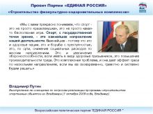 Проект Партии ЕДИНАЯ РОССИЯ Строительство физкультурно-оздоровительных комплексов Мы