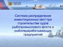 Система распределения инвестиционных квот при строительстве судов рыбопромыслового