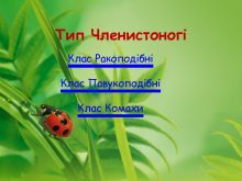 Тип Членистоногі Клас Ракоподібні Клас Павукоподібні Клас Комахи