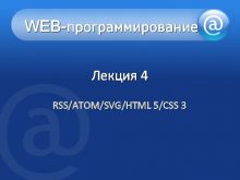 WEB-программирование Лекция 4 RSS ATOM SVG HTML 5 CSS 3 Item