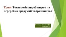 Тема Технологія виробництва та переробка продукції тваринництва Вчитель