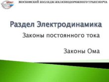 МОСКОВСКИЙ КОЛЛЕДЖ ЖЕЛЕЗНОДОРОЖНОГО ТРАНСПОРТА Раздел Электродинамика Законы постоянного