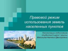 Правовой режим использования земель населенных пунктов Презентацию подготовила