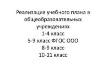 Реализация учебного плана в общеобразовательных учреждениях 1 -4