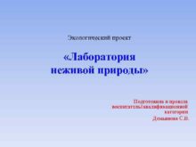 Экологический проект Лаборатория неживой природы Подготовила и провела
