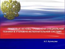 ПРАВОВЫЕ ОСНОВЫ ПРИМЕНЕНИ СПЕЦИАЛЬНОЙ ТЕХНИКИ В УГОЛОВНО-ИСПОЛНИТЕЛЬНОЙ СИСТЕМЕ