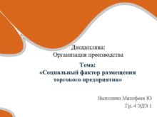 Дисциплина Организация производства Тема Социальный фактор размещения торгового