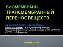 БИОМЕМБРАНЫ ТРАНСМЕМБРАННЫЙ ПЕРЕНОС ВЕЩЕСТВ Лекция по курсу Цитология