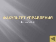ФАКУЛЬТЕТ УПРАВЛЕНИЯ Группа МО-41 Оглавление Название презентации