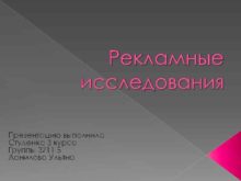 Рекламные исследования Презентацию выполнила Студенка 3 курса Группы