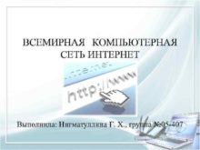 ВСЕМИРНАЯ КОМПЬЮТЕРНАЯ СЕТЬ ИНТЕРНЕТ Выполнила Нигматуллина Г Х
