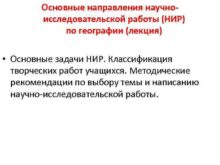 Основные направления научноисследовательской работы НИР по географии лекция