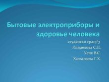 Бытовые электроприборы и здоровье человека студентки гр 117 3