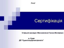 Лекції Сертифікація Старший викладач Малимоненко Галина Вікторівна м