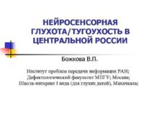 НЕЙРОСЕНСОРНАЯ ГЛУХОТА ТУГОУХОСТЬ В ЦЕНТРАЛЬНОЙ РОССИИ Божкова В П