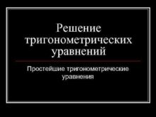 Решение тригонометрических уравнений Простейшие тригонометрические уравнения Уравнение