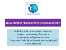 Дисциплина Введение в специальность Кафедра Госпитальная терапия профессиональные