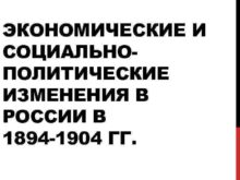 ЭКОНОМИЧЕСКИЕ И СОЦИАЛЬНОПОЛИТИЧЕСКИЕ ИЗМЕНЕНИЯ В РОССИИ В 1894