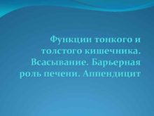 Функции тонкого и толстого кишечника Всасывание Барьерная роль