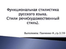 Функциональная стилистика русского языка Стили речи художественный стиль Выполнила