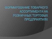 ФОРМИРОВАНИЕ ТОВАРНОГО АССОРТИМЕНТА НА РОЗНИЧНЫХ ТОРГОВЫХ ПРЕДПРИЯТИЯХ