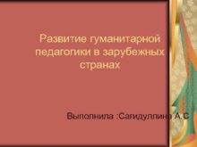 Развитие гуманитарной педагогики в зарубежных странах Выполнила