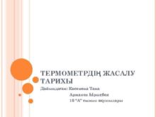 ТЕРМОМЕТРДІҢ ЖАСАЛУ ТАРИХЫ Дайындаған Касенова Тана Арманов Ырысбек