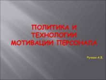 ПОЛИТИКА И ТЕХНОЛОГИИ МОТИВАЦИИ ПЕРСОНАЛА Ручкин А В