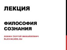 ЛЕКЦИЯ ФИЛОСОФИЯ СОЗНАНИЯ ЛЕВИН СЕРГЕЙ МИХАЙЛОВИЧ SLEVIN HSE RU