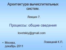 Архитектура вычислительных систем Лекция 7 Процессы общие сведения
