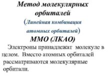 Метод молекулярных орбиталей Линейная комбинация атомных орбиталей ММО