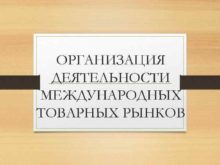 ОРГАНИЗАЦИЯ ДЕЯТЕЛЬНОСТИ МЕЖДУНАРОДНЫХ ТОВАРНЫХ РЫНКОВ ВОПРОСЫ ДЛЯ