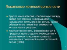 Локальные компьютерные сети l l Группа компьютеров соединенных