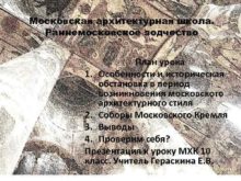 Московская архитектурная школа Раннемосковское зодчество План урока 1