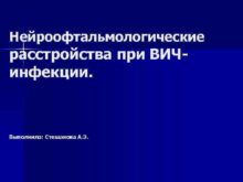 Нейроофтальмологические расстройства при ВИЧинфекции Выполнила Стешанова А Э