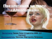 Презентация на тему Алкоголизм Выполнила Ежова Алла студентка