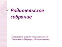 Родительское собрание Подготовила учитель начальных классов Разумовская Маргарита