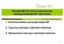 Тема 10 Нетарифное регулирование международной торговли 1 Количественное