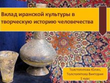 Вклад иранской культуры в творческую историю человечества Толстопятова
