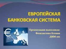 ЕВРОПЕЙСКАЯ БАНКОВСКАЯ СИСТЕМА Презентацию выполнила Феоктистова Ксения ДММ-201