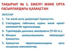 ТАҚЫРЫП 1 ЕЖЕЛГІ ЖӘНЕ ОРТА ҒАСЫРЛАРДАҒЫ ҚАЗАҚСТАН