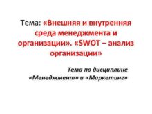 Тема Внешняя и внутренняя среда менеджмента и организации
