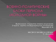 ВОЕННО-ПОЛИТИЧЕСКИЕ БЛОКИ ПЕРИОДА ХОЛОДНОЙ ВОЙНЫ Выполнила студентка очного